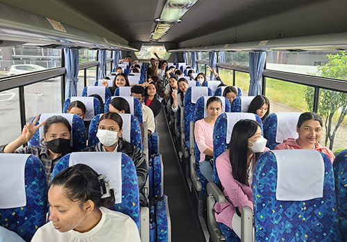 仙台駅(せんだいえいき)から東北本線(とうほくほんせん)に乗(の)って館腰駅(たてこしえき)まで移動(いどう)し、そこから学校(がっこう)のバスで行(い)きました。