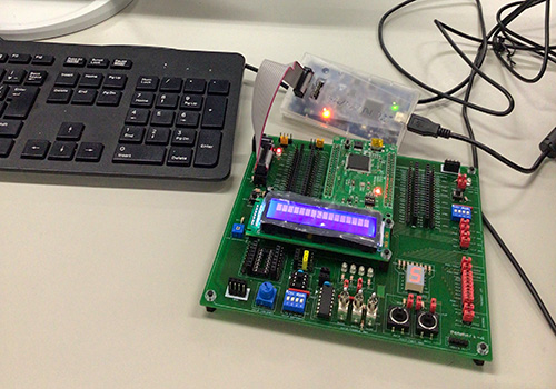 第1回目は5月22日(木)に開催され、機械に組込んで動作させるコンピュータであるMPUの構造や、ツールについて学びました。第2回目以降では、MPUの動作を学び、プログラムでLEDやブザーを動作させる実験等を行いました。