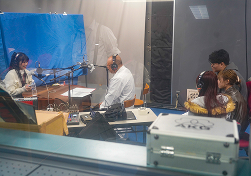 毎月、メインパーソナリティであるヴァイオリニストの渡邊多佳子さんが本校を訪れ、校内3階にある本格的な録音設備を備えたAVCスタジオで収録を行っています。
