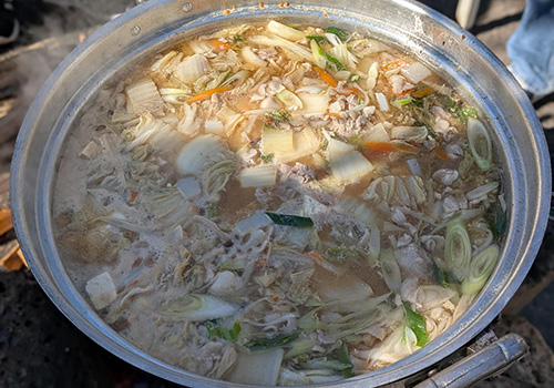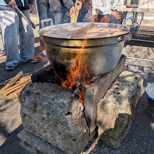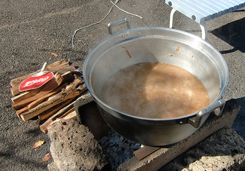 今年は2年生に焚火の達人がいたおかげで、この火の勢いで鍋を作っていきます。