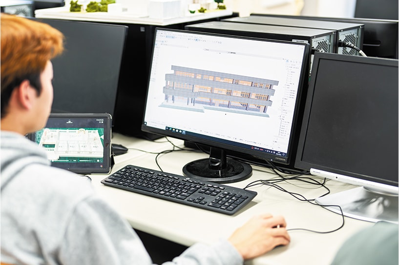 - 実務で使用される「BIM※」を1年次から学ぶことで、短期間で基礎から実践的な技術まで身につけることが可能です。