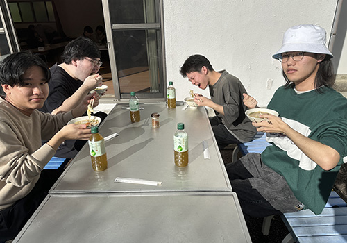 「芋煮会では、先輩方がレクリエーションを企画してくださいました。先輩方の準備や工夫のおかげで、楽しい時間を過ごすことができました。来年もみんなで楽しめるような芋煮会にしたいです」