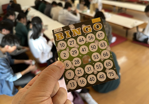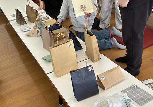 景品を各自で用意して中身が見えないように袋に入れたら、「レッツ!」、「ビンゴーっ♪」