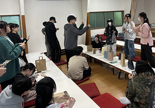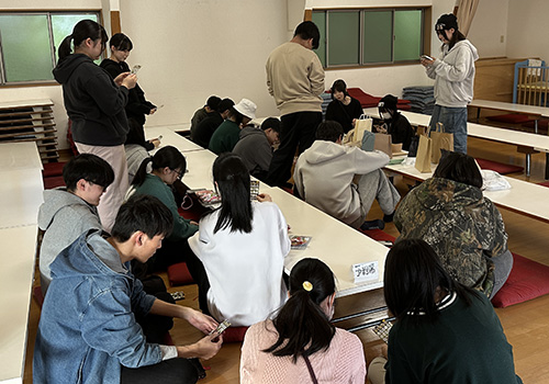 芋煮ができるまでに1、2年生合同でトランプ大会や写真コンテスト、ビンゴ大会で盛り上がりました。トランプ大会と写真コンテストはチーム戦で得点が入るようになっており、総合優勝チームには賞品が授与されました。