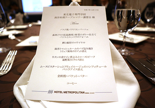 総合情報ビジネス科では、12月17日(水)にホテルメトロポリタン仙台でテーブルマナー研修を行いました。