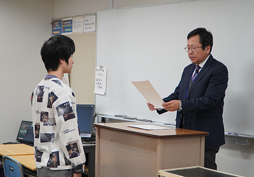 研修終了後、学校に宮城県知事名の修了証書が送られてきたので、種田校長先生より全員に修了証書を手渡ししていただきました。