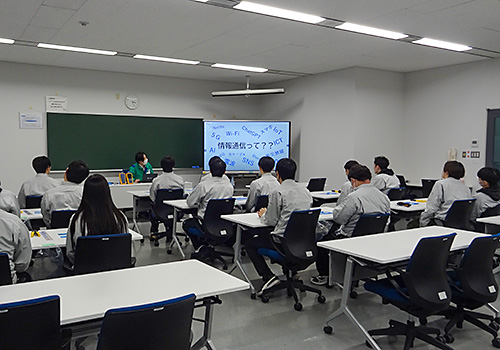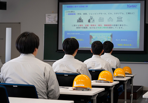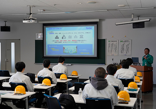 電気工事科の学生達は、8割近くが電気工事施工管理業界に就職します。そんな学生達にとってユアテックは憧れの企業であり、皆興味津々で迎えた1日でした。