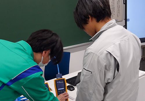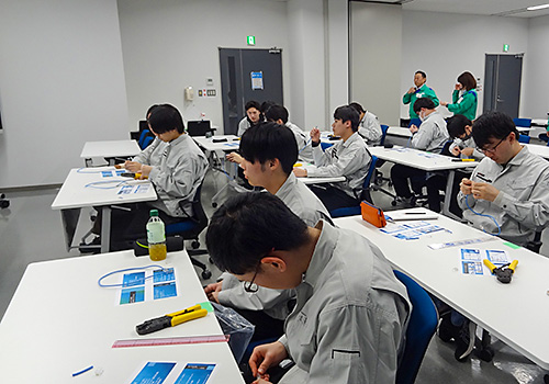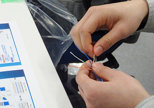 変電業務では、変電所のスイッチを動かし、実際に遮断機等が動作する体験、通信業務では、LANケーブルの作成等、盛りだくさんの1日でした。