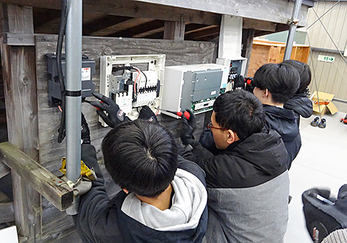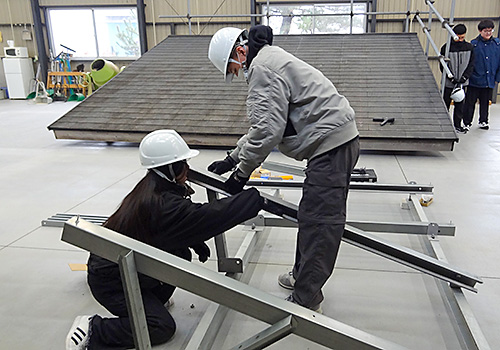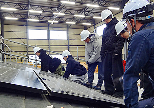 電気工事科 太陽光発電パネルの設置実習