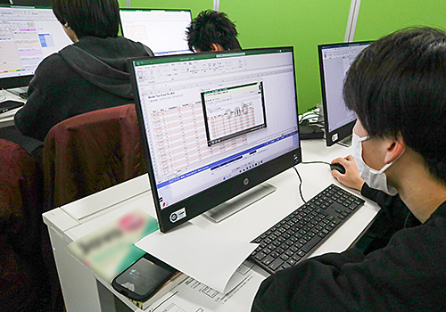総合情報ビジネス科では、Excelのスキル向上のため、MOS(Microsoft Office Specialist)資格取得に向けた学習を行っています。