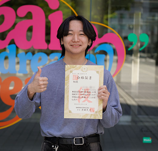 「一番難しい初段の合格を目標に毎日学校や自宅でたくさん練習したので、合格できてとても嬉しいです。将来の目標はIT企業で営業職としてバリバリ働くことなので、これからも簿記やITパスポートなど、ビジネスに役立つ資格を取得できるように頑張ります!」