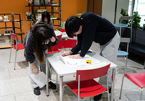 2年生に進級すると、まずは「椅子」を理解するために、メジャーで実測しそれを元に作図を行います。