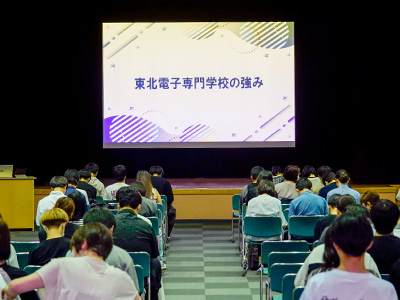 教室や各実習室、学生ホール、就職センター、食堂などを案内します。