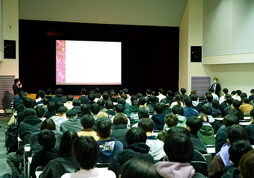 後日行われた進級学年の贈呈式では、会場の視聴覚ホールに大勢の学生が集まりました。