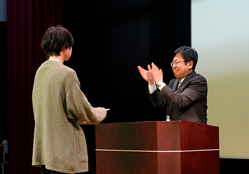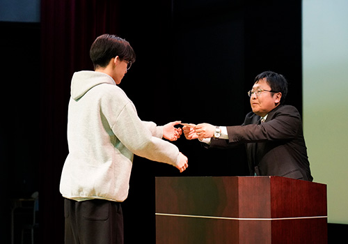 校長から一人ひとりに励ましの言葉とともに副賞が贈られ、学生たちは4月から始まるエンジニア生活に向けて、決意を新たに凛々しい表情を見せてくれました。