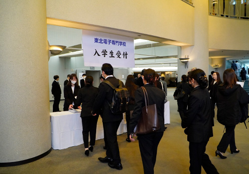 入学式では、多くのご家族が見守る中、本校の代表者が種田校長より入学許可書を受け取り、東北電子専門学校の学生としての第一歩を踏み出しました。